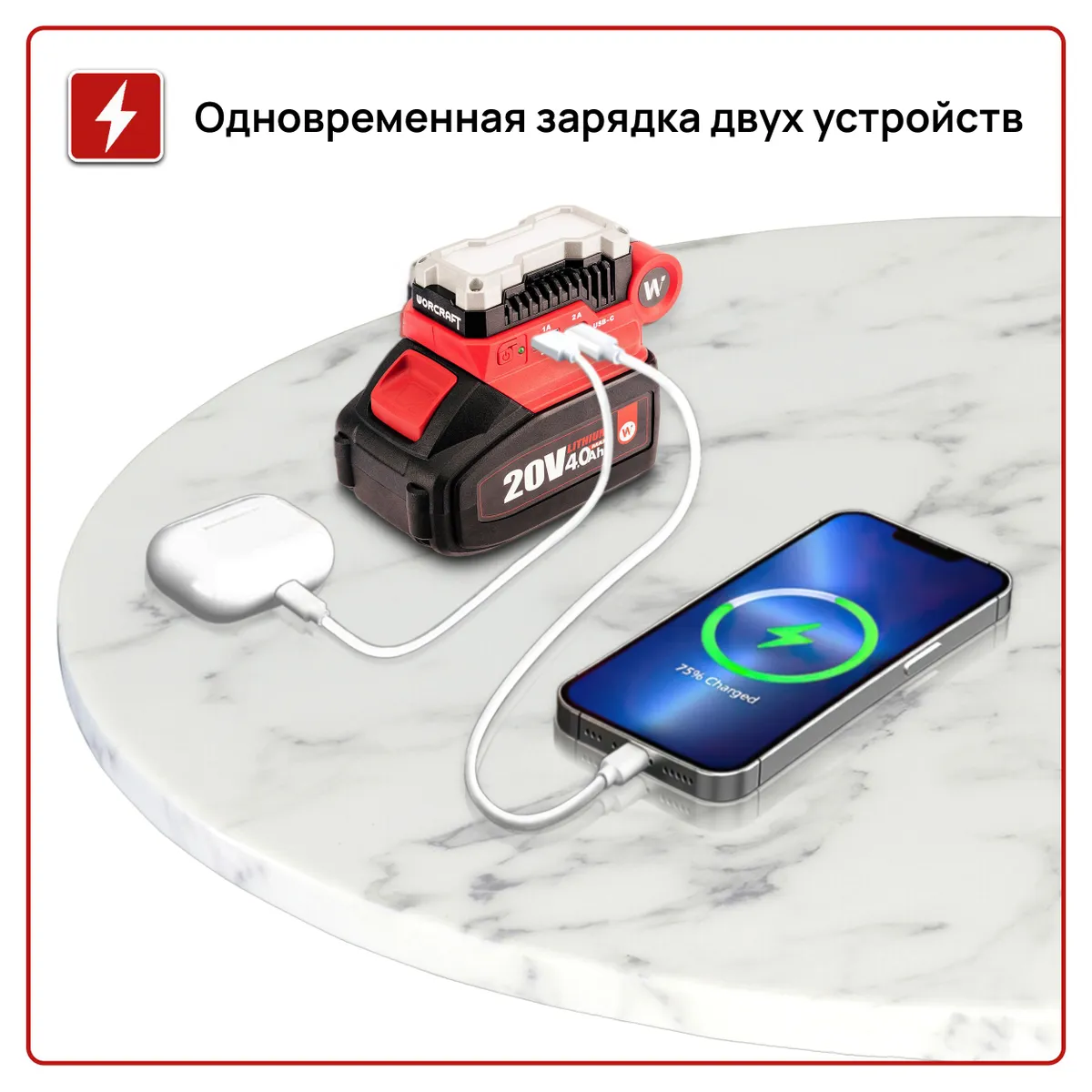 В общем, WORCRAFT Адаптер-преобразователь – это универсальный и практичный аксессуар, который пригодится как профессиональным строителям, так и домашним мастерам. Он поможет вам оставаться на связи, заряжать свои устройства и работать в любых условиях, не завися от наличия электросети.