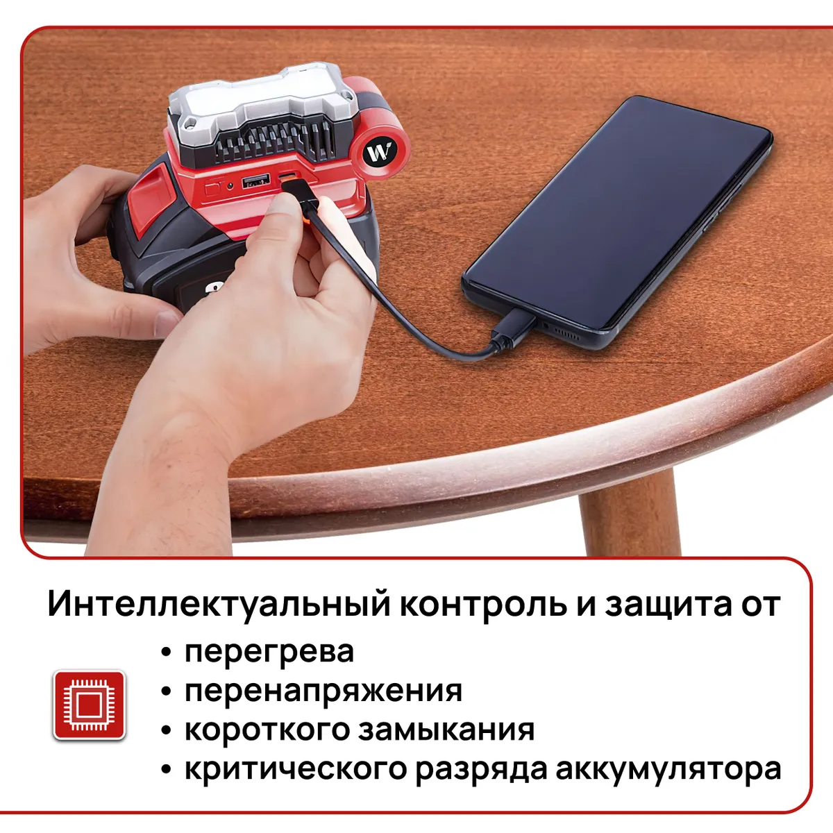 Адаптер-преобразователь WORCRAFT – это настоящее спасение, когда вы находитесь на объекте, вдали от розетки. Представьте, что ваш телефон разрядился в самый неподходящий момент, когда нужно срочно сделать звонок или проверить почту. С этим адаптером достаточно подключить его к аккумулятору вашего инструмента, и проблема решена. Больше не нужно искать розетку или просить о помощи – у вас всегда под рукой источник энергии.