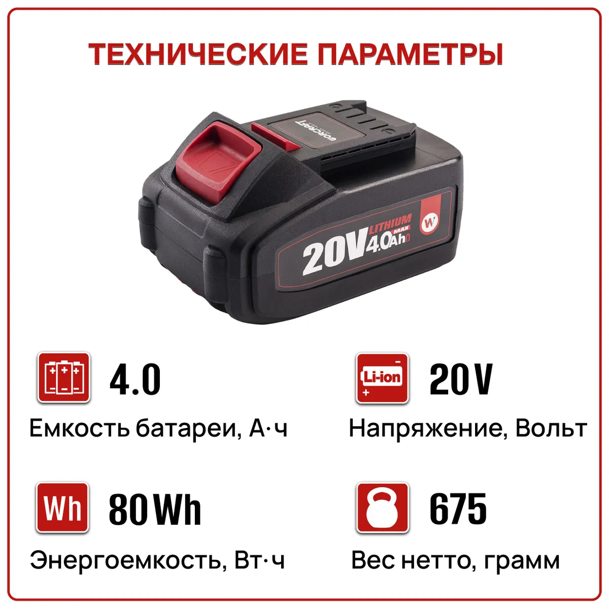 Аккумуляторная батарея WORCRAFT 20V Li-ion на 4.0Ah – просто находка для вашего электроинструмента!