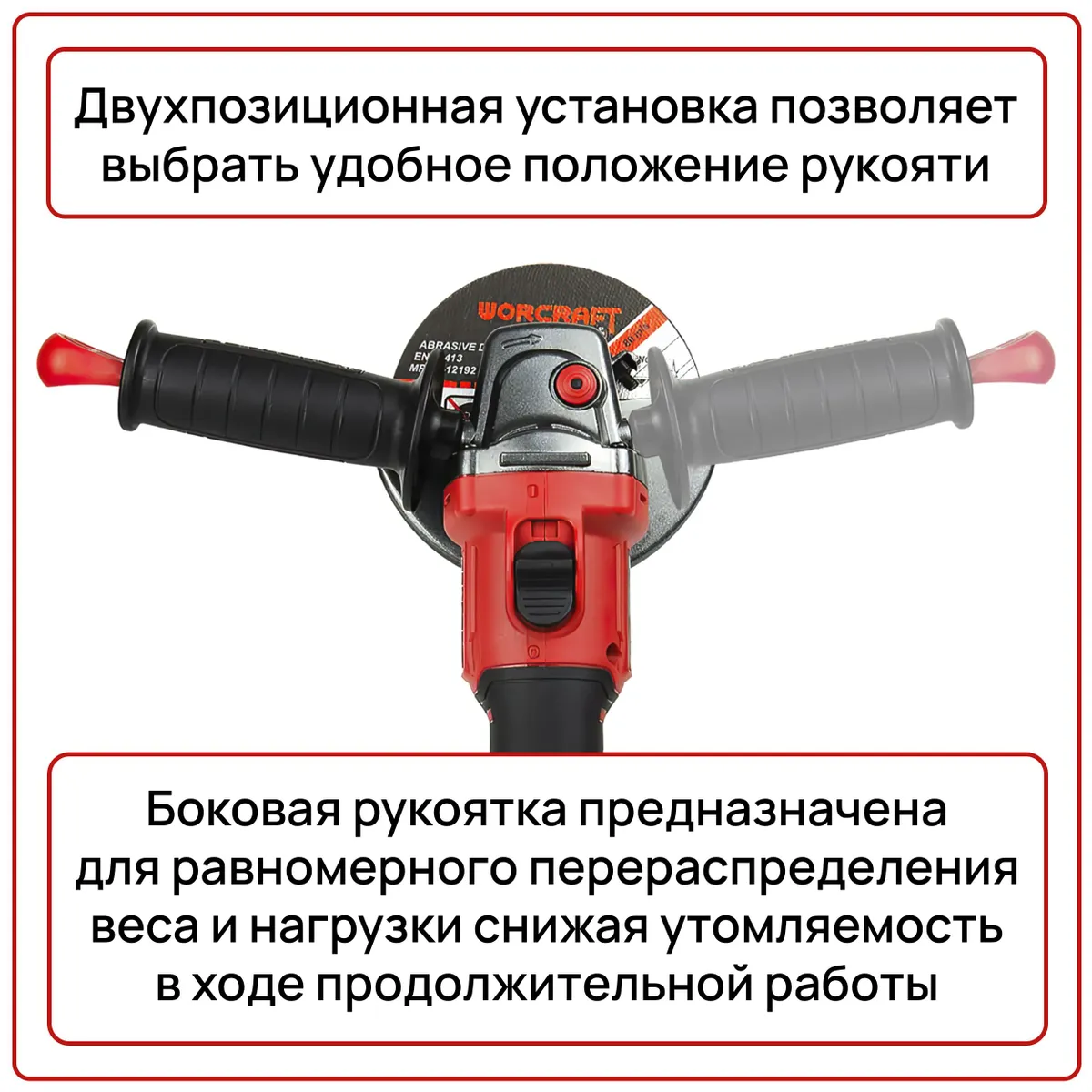 Безопасность и комфорт при работе – превыше всего. Поэтому WORCRAFT CAG-S20LiBH оснащена удобной кнопкой включения/выключения с возможностью блокировки. Это исключает случайное включение и обеспечивает дополнительную безопасность. А наличие двух скоростей позволяет вам выбрать оптимальный режим работы для резки или полировки.