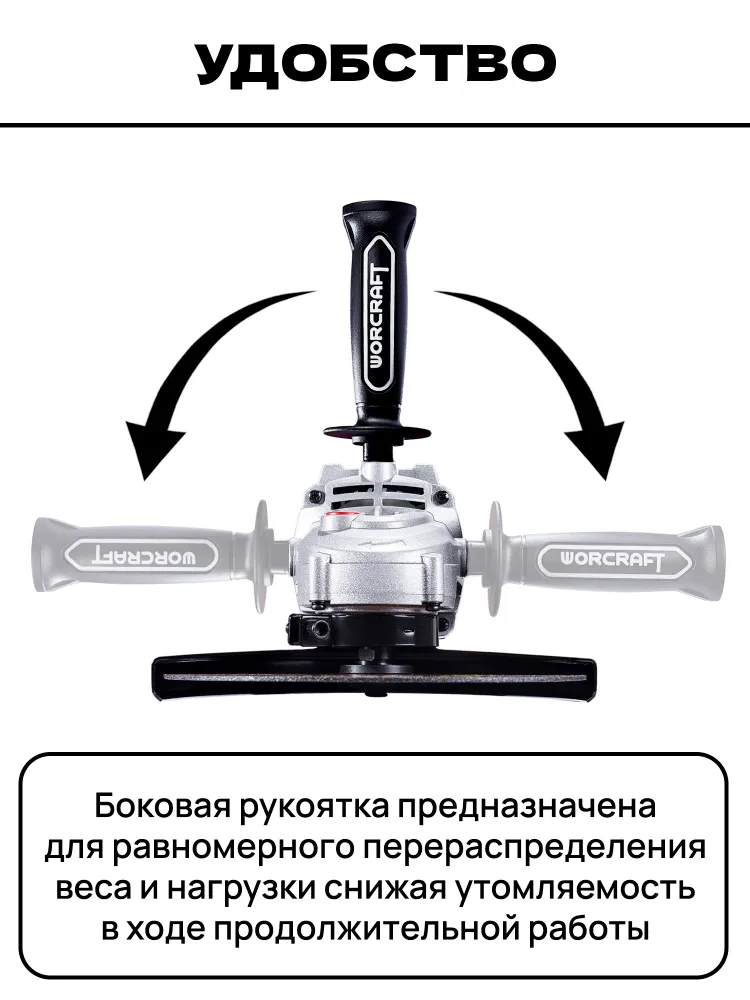 Удобная трехпозиционная рукоятка позволяет надежно удерживать инструмент в руках и работать в различных положениях. Это особенно важно при длительной работе, когда нужно менять хват для снижения усталости. Длинный шнур в 1,8 метра тоже добавляет удобства, позволяя свободно перемещаться по рабочей зоне, не привязываясь к розетке.