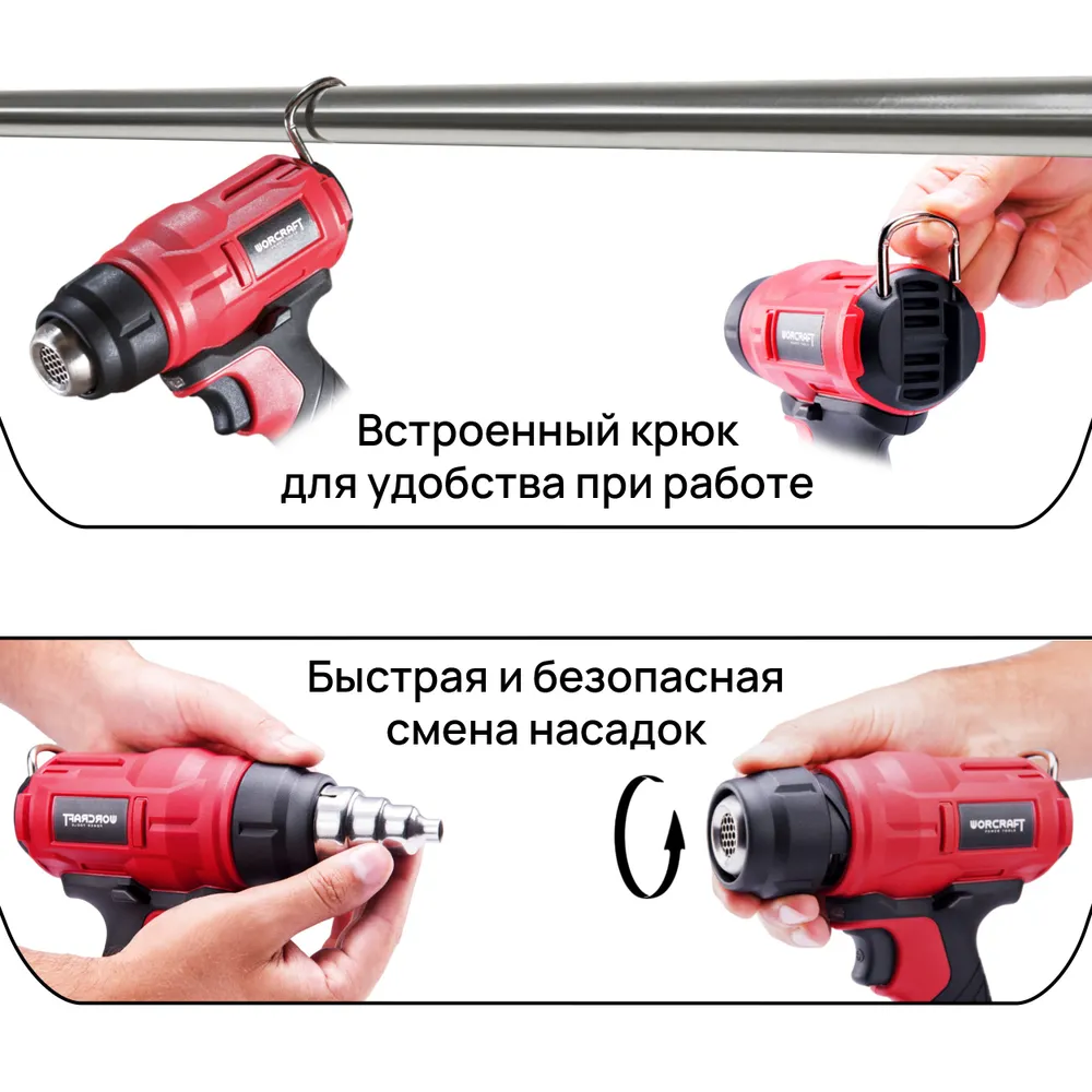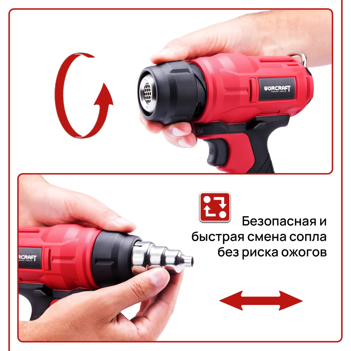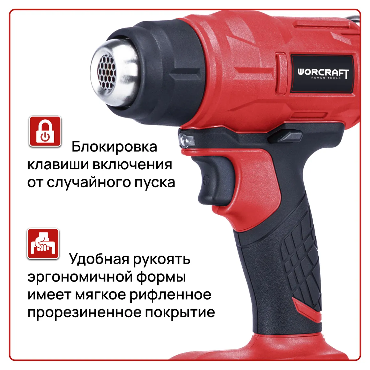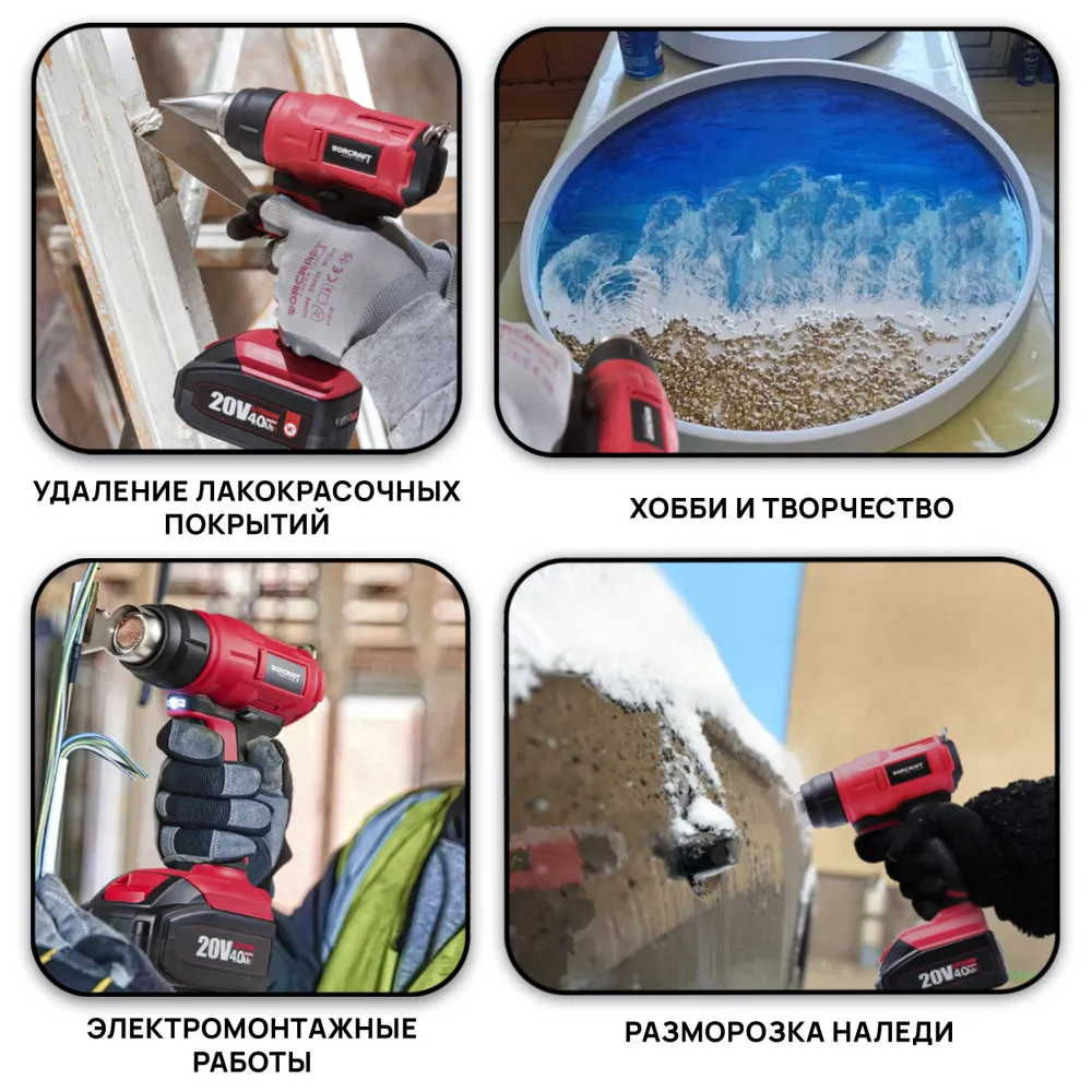 Аккумуляторный термопистолет WORCRAFT мощностью 400 Вт и производительностью 200 литров в минуту – отличный помощник для множества задач, будь то снятие старой краски, оттаивание замерзших труб или мелкий электромонтаж.