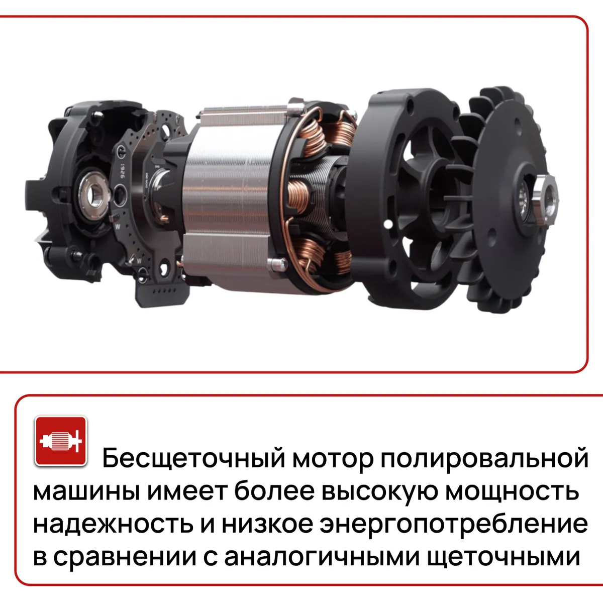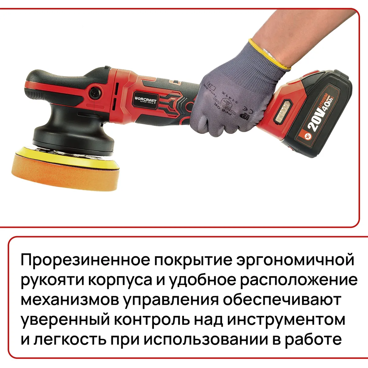 Эргономичный дизайн корпуса и удобная рукоятка с резиновыми вставками обеспечивают комфортный захват и снижают усталость при длительной работе. Машинка хорошо сбалансирована, что позволяет уверенно контролировать процесс полировки и достигать отличных результатов без особых усилий.
