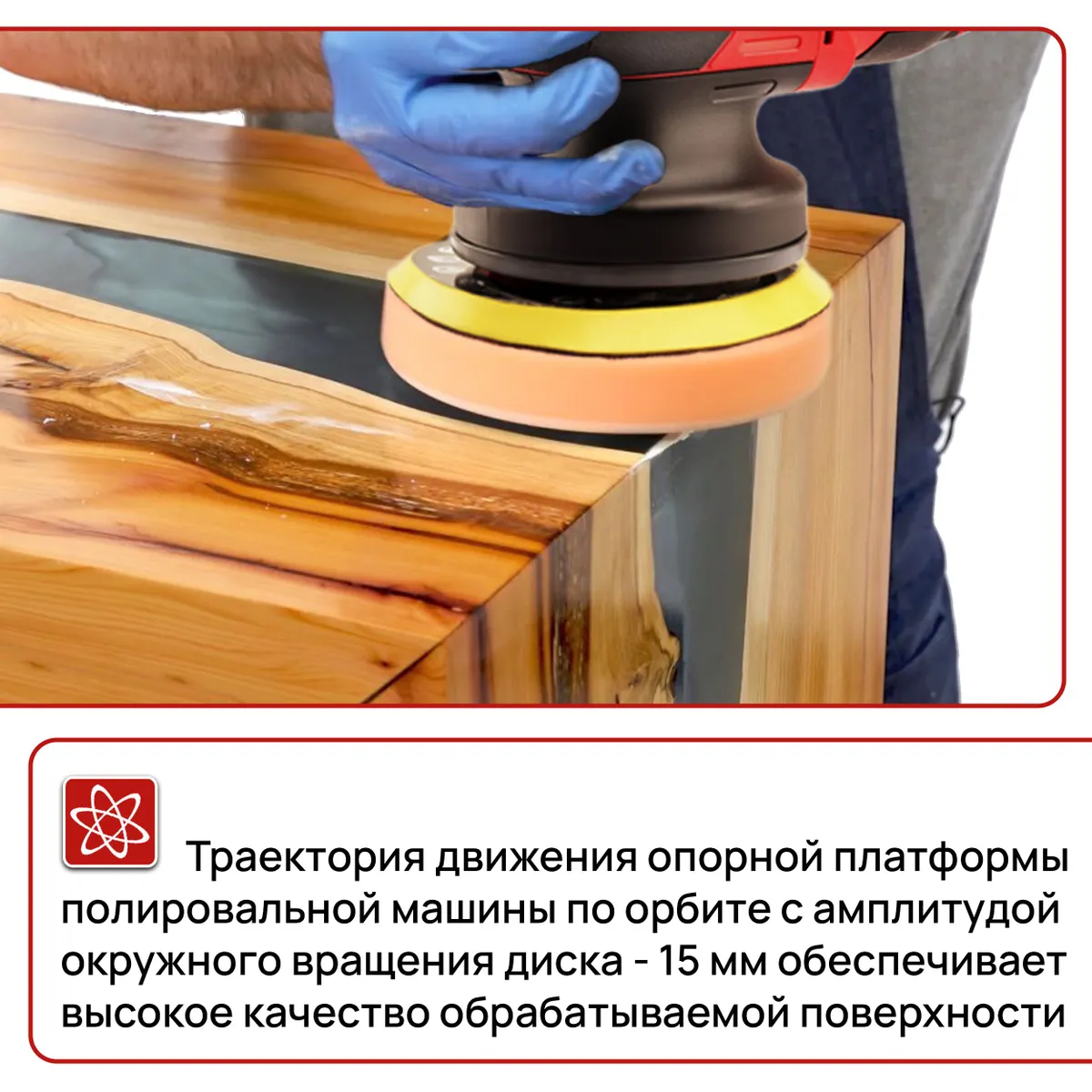 Ещё одним плюсом этой полировальной машинки является её аккумуляторное исполнение. Никаких проводов, тянущихся по всей мастерской, только свобода движений и возможность работать там, где нет розетки под рукой. Аккумулятор обеспечивает достаточную мощность для выполнения большинства задач, а индикатор уровня заряда позволяет всегда быть в курсе, когда пора "на дозаправку".