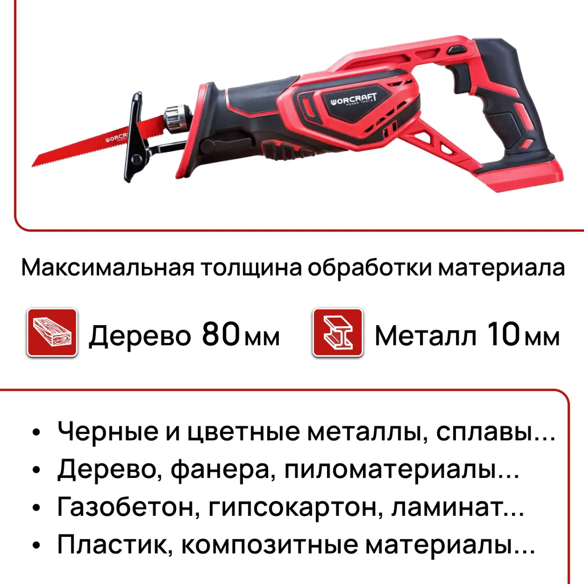Аккумуляторная сабельная пила WORCRAFT CSS-S20Li. Универсальный инструмент для дома, сада и промышленного использования.