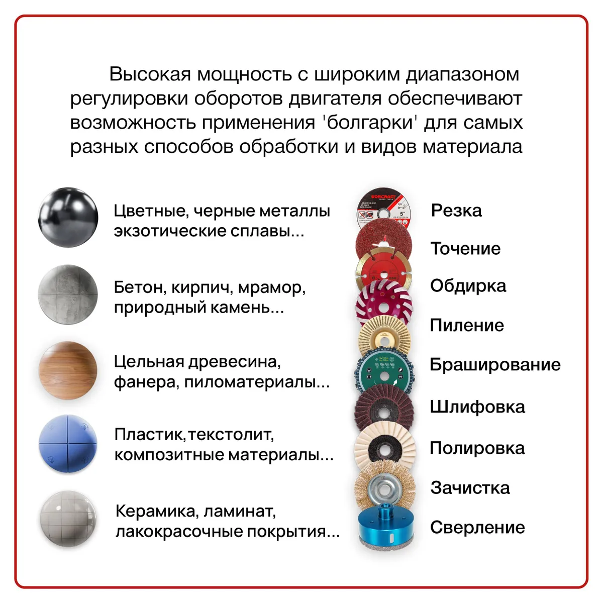 Угловая шлифмашина (УШМ) – вещь универсальная. Ей можно резать, шлифовать, полировать разные штуки: металл, камень, бетон, дерево. С её помощью обрабатывают края, углы, убирают ржу и старую краску. Ещё она пригодится, чтобы придать форму деталям из металла и пластика, а также наточить инструмент
