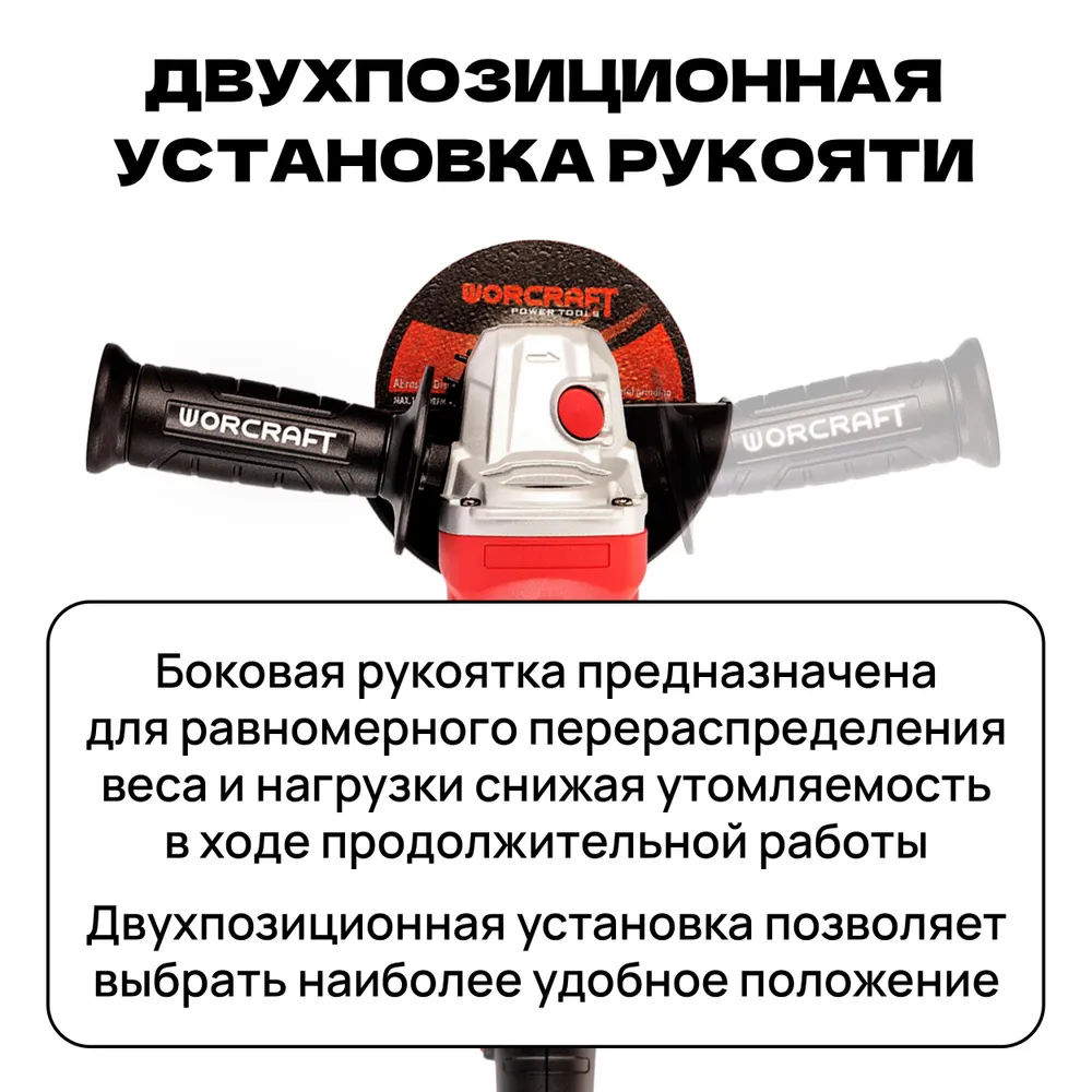 Болгарка 125 – это крутая и производительная угловая шлифмашина, прямо создана для профи. Этот девайс заточен под диски до 125 мм и разгоняется до 12 тысяч оборотов в минуту. В коробке с УШМ 125 ты найдёшь запасной комплект щёток, дополнительную ручку, защитный кожух и ключ.