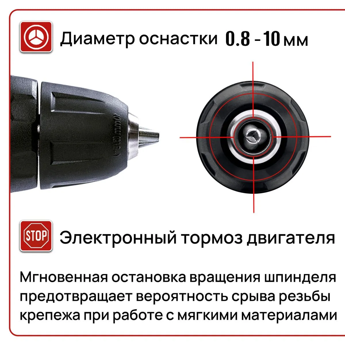 Этот компактный и мощный шуруповерт станет отличным помощником как дома, так и на небольших строительных площадках. С ним легко собрать мебель, повесить полку или картину, провести мелкий ремонт. Наличие двух аккумуляторов в комплекте позволяет работать практически непрерывно: пока один аккумулятор заряжается, второй находится в работе. А быстрая зарядка минимизирует время простоя.