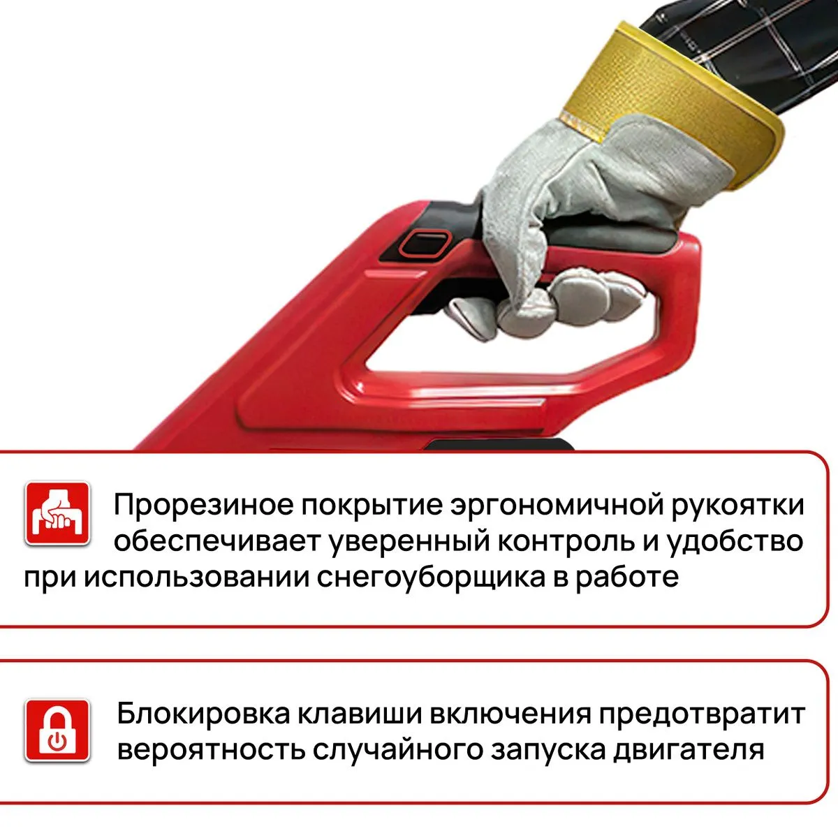 Регулировка направления выброса снега – это еще одно преимущество, которое позволяет контролировать процесс уборки. Просто направьте снег туда, куда вам нужно, чтобы избежать повторных проходов и сделать работу максимально эффективной. Прорезиненная рукоятка и регулируемая дополнительная рукоятка обеспечивают удобный захват и позволяют настроить инструмент под себя для максимального комфорта.