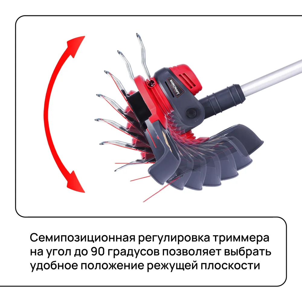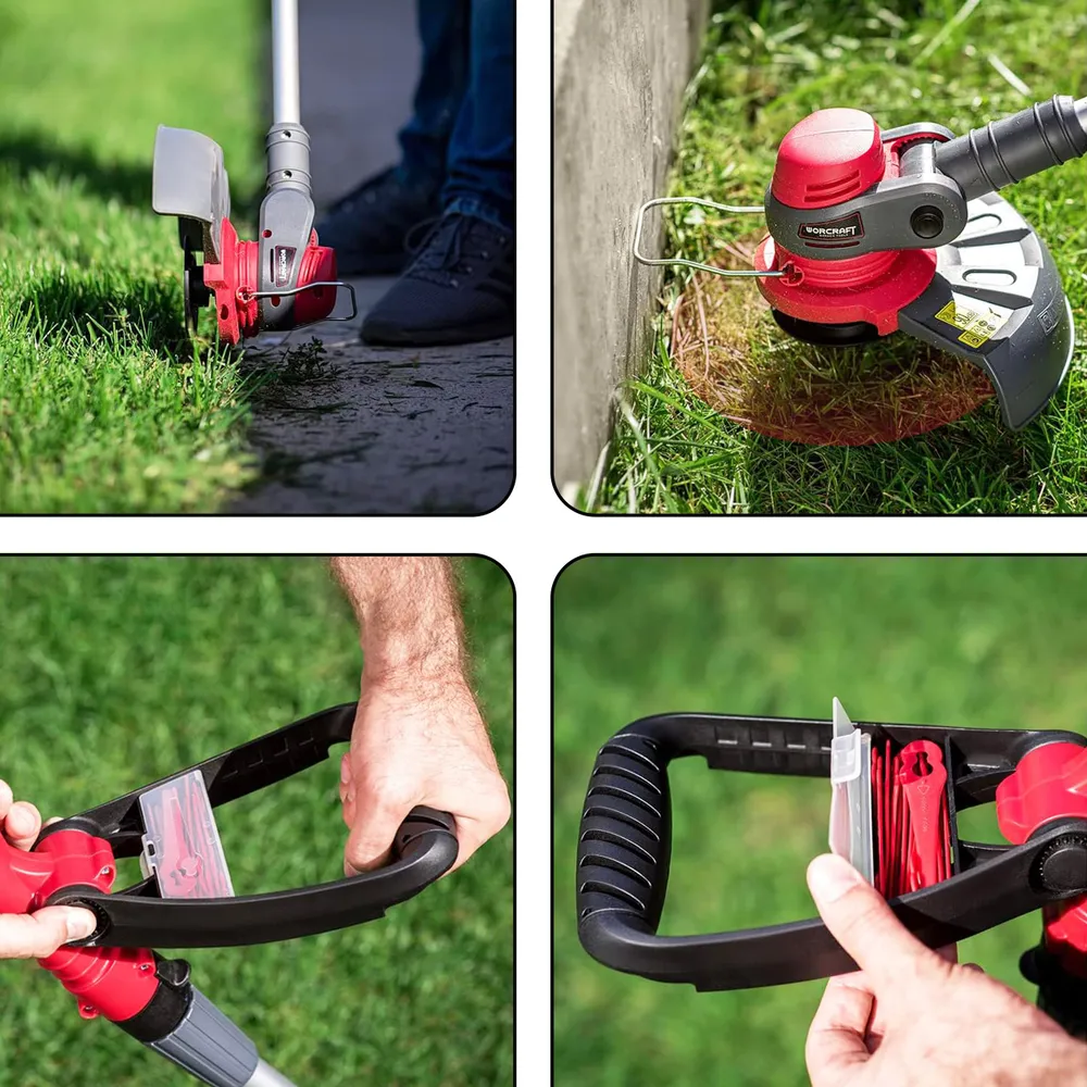 Благодаря сменным насадкам, триммер становится универсальным инструментом. Леска идеально подходит для стрижки мягкой травы, ножи справятся с более жесткой растительностью, а катушка поможет быстро обработать большие участки. Больше не нужно покупать несколько разных инструментов – WORCRAFT заменит их все.
