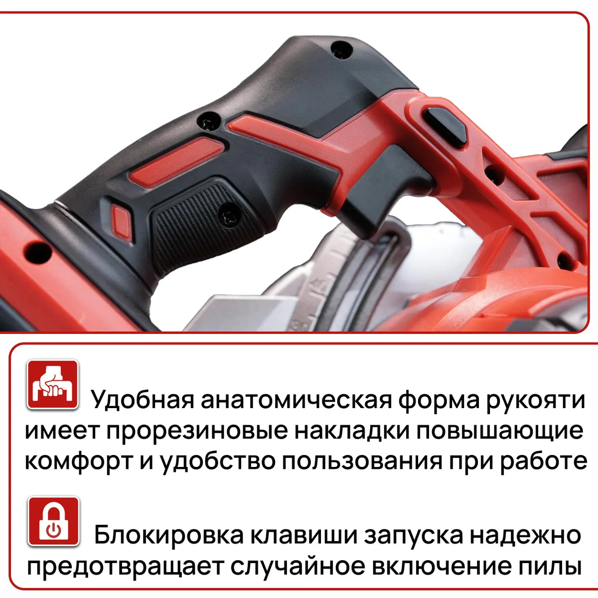 Благодаря компактным размерам и небольшому весу, эта циркулярка отлично подойдет для работы в труднодоступных местах. Ее удобно брать с собой на выезды, например, на дачу или при ремонте на объектах. А эргономичный дизайн ручки позволяет удобно держать пилу в руках даже при длительной работе, не ощущая усталости.