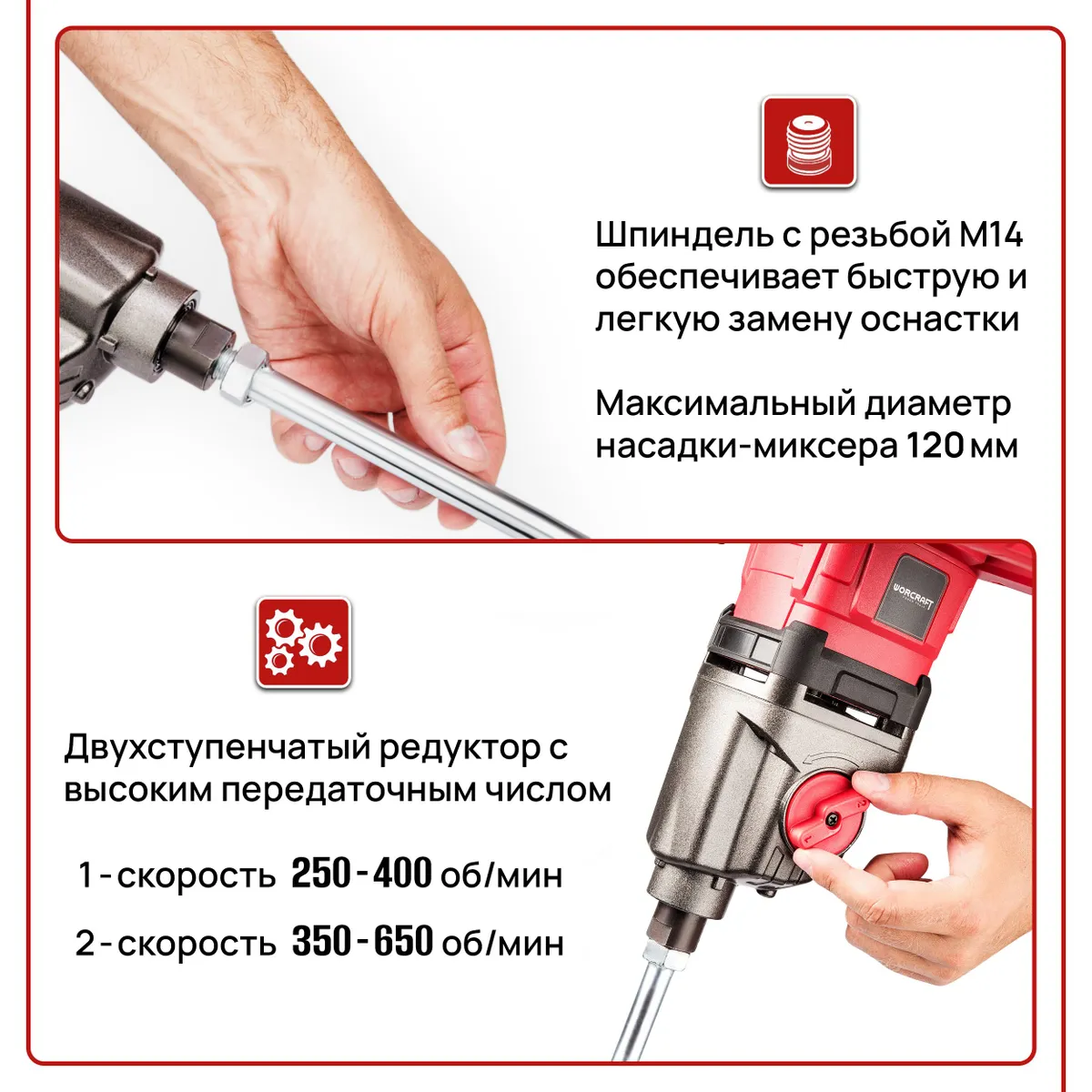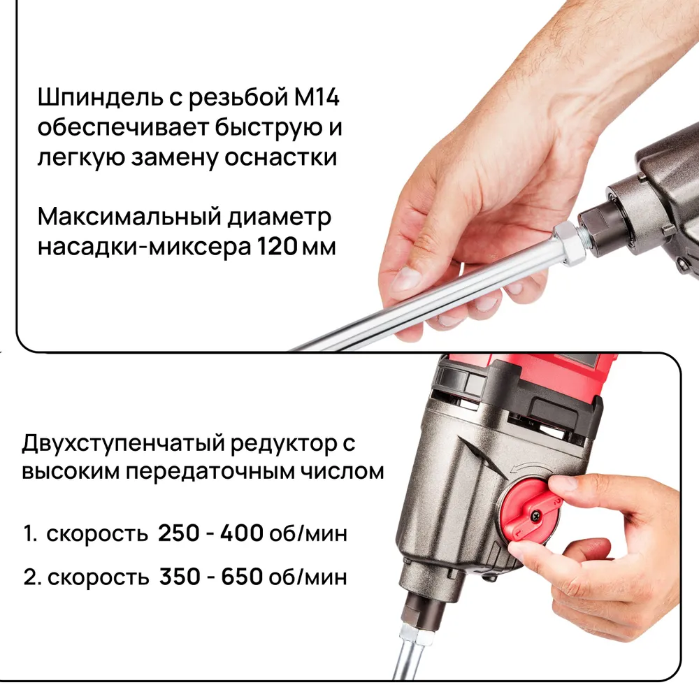 А что насчет удобства использования? Здесь все продумано до мелочей. Функция плавного пуска позволяет избежать брызг и разлетания смеси в начале замешивания, а поддержка оборотов под нагрузкой гарантирует, что миксер не "заглохнет" даже при работе с густыми растворами. Электронная регулировка скорости дает возможность подобрать оптимальный режим для каждого материала, будь то легкая штукатурка или тяжелый бетон.