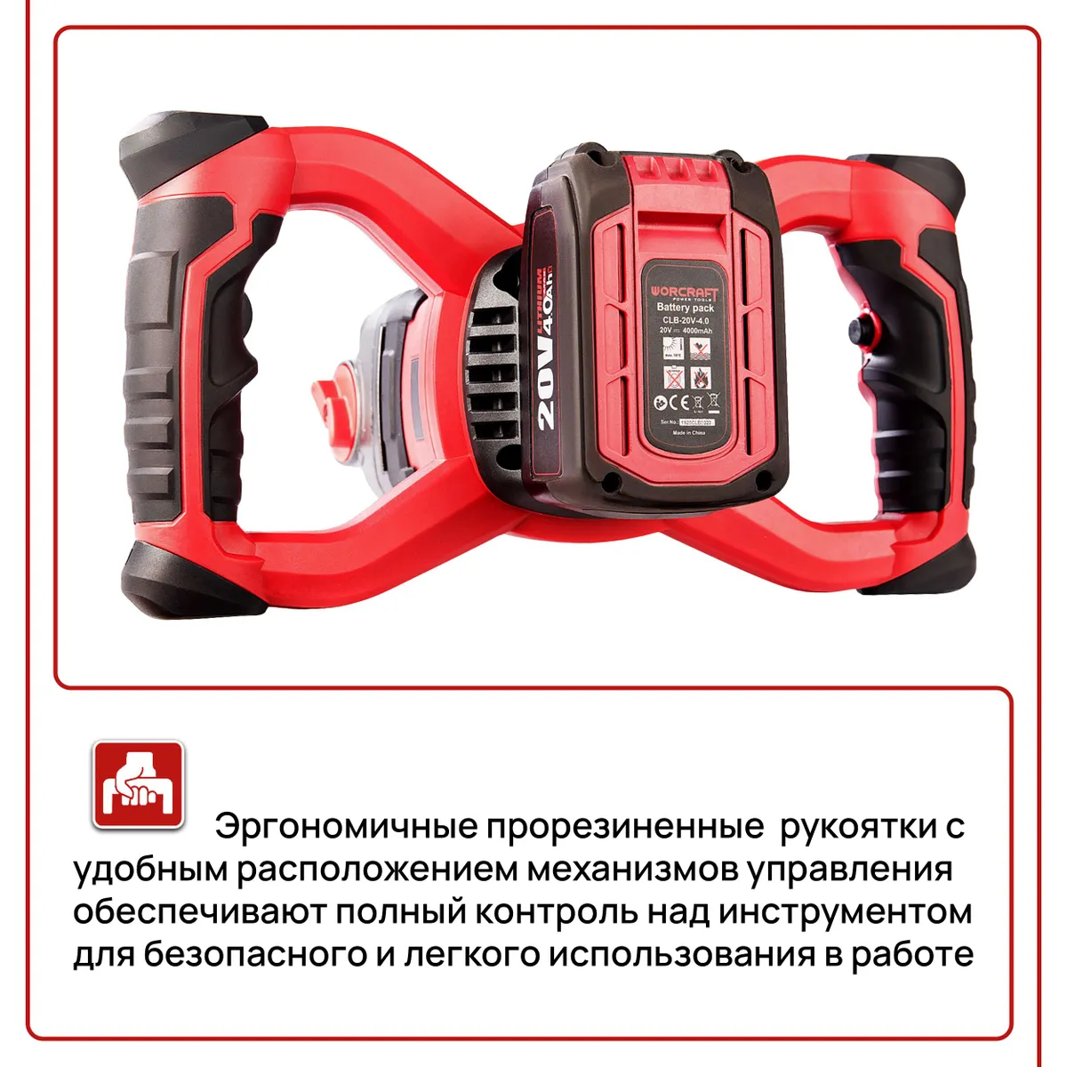 Этот аккумуляторный строительный миксер WORCRAFT – настоящий помощник на стройке! Забудьте о проводах и розетках, ведь он работает от батареи, даря вам полную свободу передвижения по объекту. Представьте, больше не нужно тянуть удлинители через всю площадку или искать свободную розетку. Просто берите миксер и приступайте к работе!