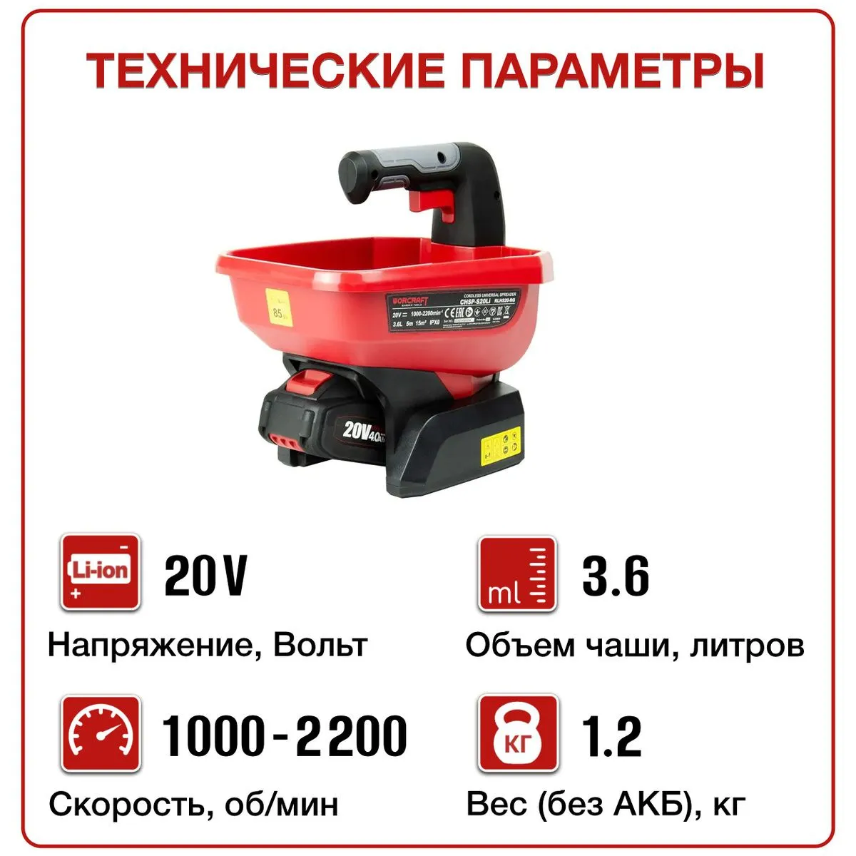Этот аккумуляторный разбрасыватель станет вашим надежным помощником в саду и не только. Забудьте о неравномерном распределении удобрений или реагентов – с WORCRAFT CHSP‑S20Li ваш газон всегда будет выглядеть ухоженным, а дорожки – безопасными в зимний период. Благодаря широкому спектру настроек, вы сможете подобрать оптимальный режим для любых задач, будь то подкормка травы, внесение удобрений или разбрасывание соли.