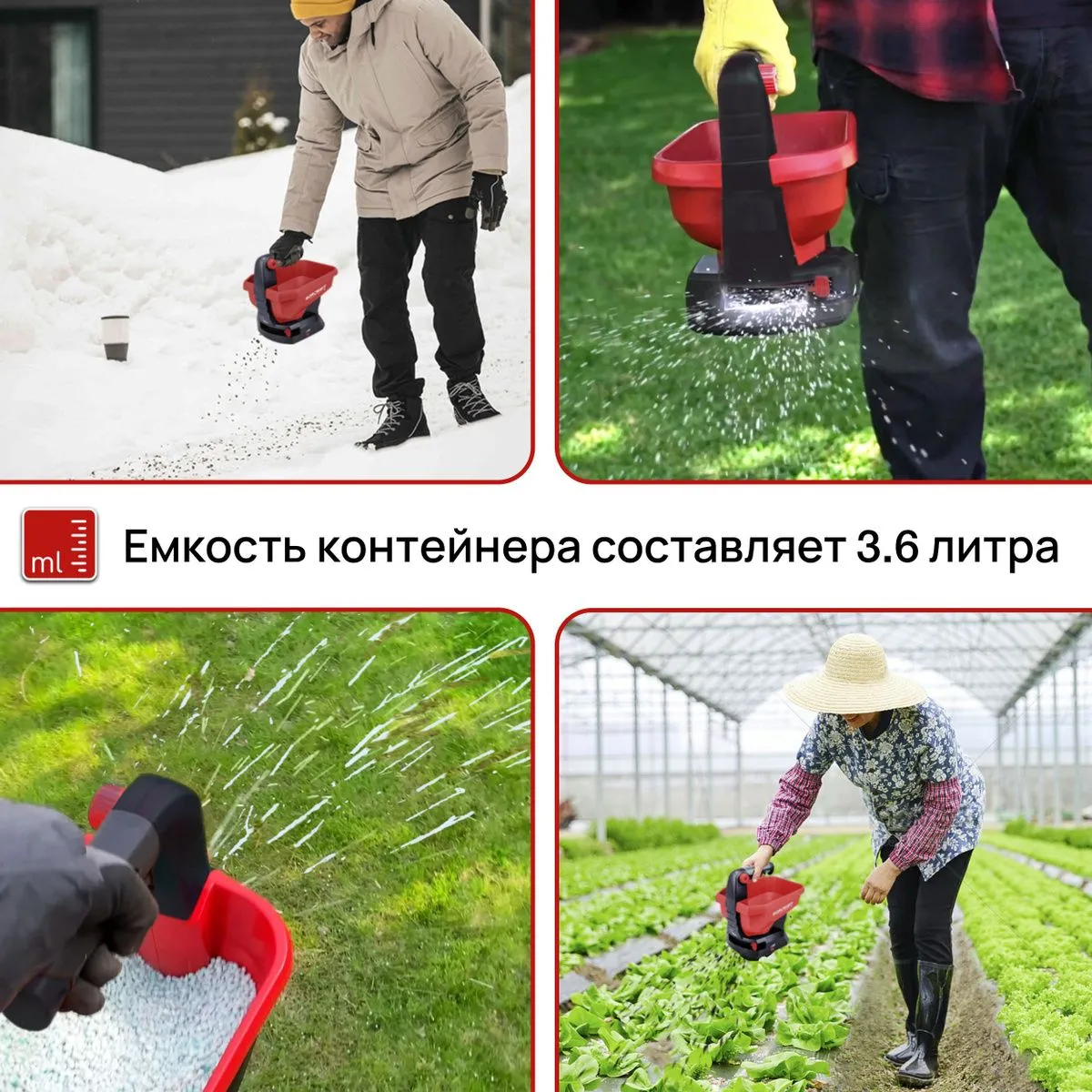 Самое главное – это, конечно же, удобство использования. Регулируйте интенсивность, дальность и ширину разбрасывания, чтобы добиться идеального результата. Прорезиненная рукоятка обеспечивает надежный захват, а оптимальный объем бункера позволяет работать дольше без перерывов на дозаправку. К тому же, прочный корпус из ABS-пластика гарантирует долговечность инструмента.