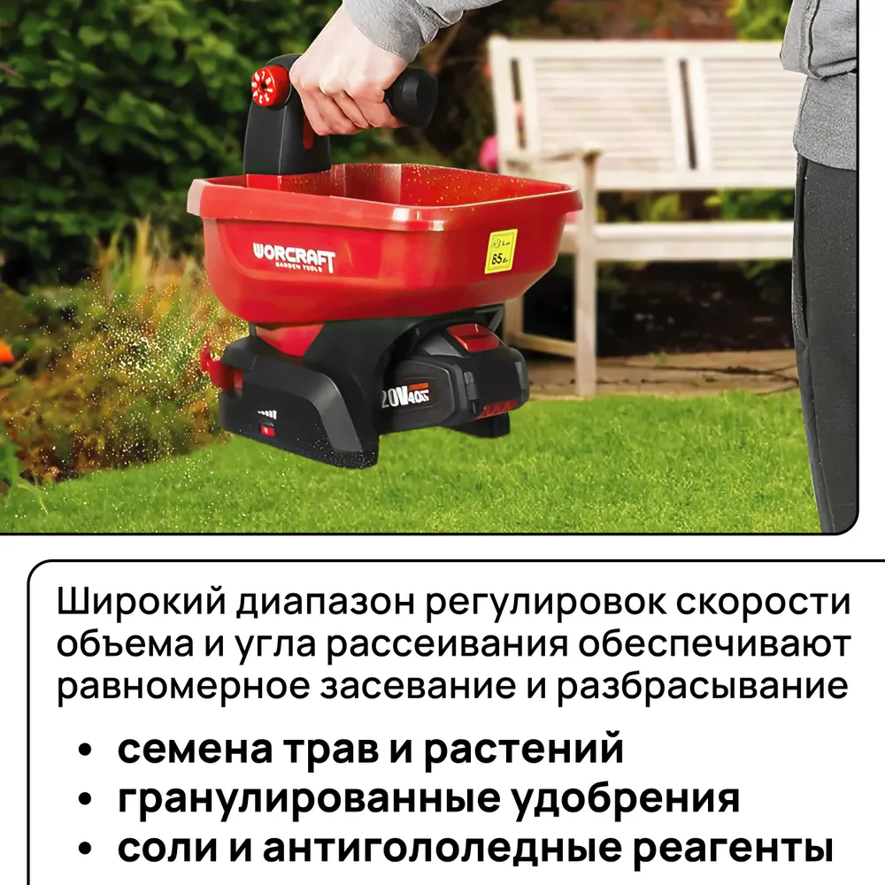 Этот аккумуляторный разбрасыватель станет вашим надежным помощником в саду и не только. Забудьте о неравномерном распределении удобрений или реагентов – с WORCRAFT CHSP‑S20Li ваш газон всегда будет выглядеть ухоженным, а дорожки – безопасными в зимний период.