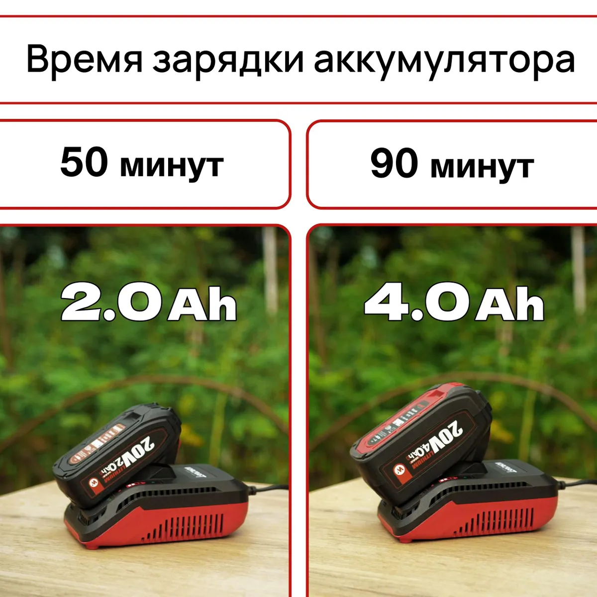 Аккумулятор на 2,0 Ач – 50 минут.